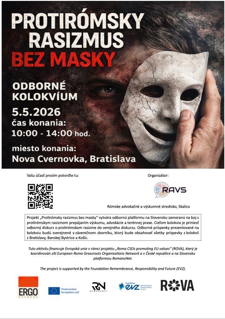 3 hours ago 31 marca, 202631 marca, 2026zuzball Protirómsky rasizmus bez masky – 1. odborné kolokvium v Bratislave Registrovať sa môžete tu: https://docs.google.com/forms/d/1J_hTweSdnX0Fu0N1S6pEysQHELc58sc-Ti5tNVmenIU/edit Zdieľaj tento článok: Share on X(Otvorí sa v novom okne) X Zdielať na Facebooku(Otvorí sa v novom okne) Facebook Páči sa mi Nahráva sa... Súvisiace